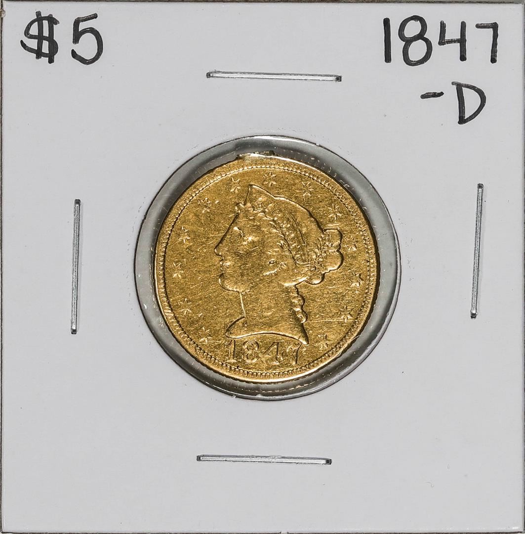 One 1847-D $5 Liberty Head Half Eagle Gold Coin Ex-Jewelry.