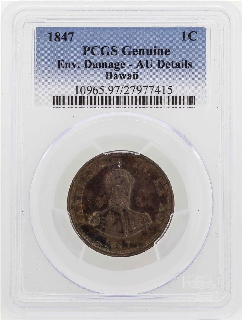 One 1847 Kingdom of Hawaii Penny Coin PCGS AU Details. PCGS Graded.