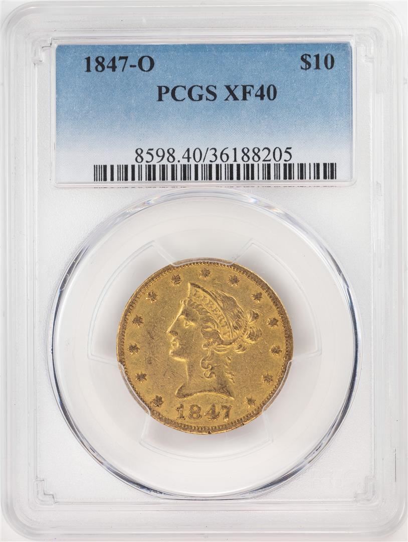 One 1847-O $10 Liberty Head Eagle Gold Coin PCGS XF40. PCGS Graded.