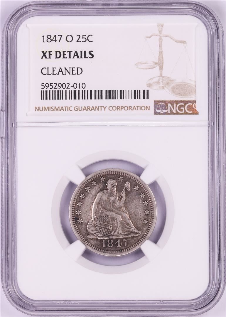 One 1847-O Seated Liberty Quarter Coin NGC XF Details. NGC Certified.