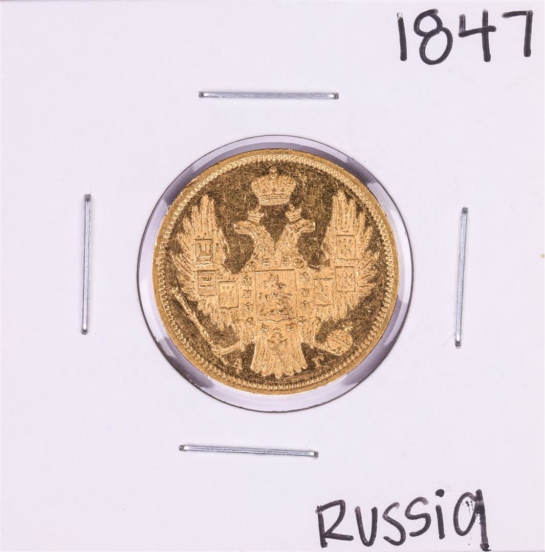 One 1847 Russia Nicholas I 5 Roubles Gold Coin.