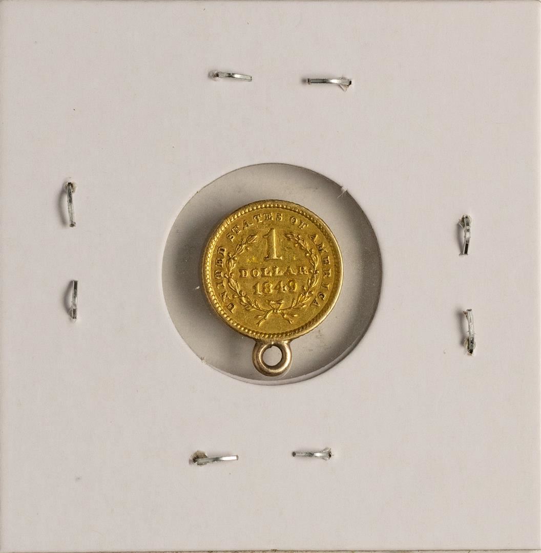One 1849 $1 Liberty Head Gold Dollar Coin w/Loupe.