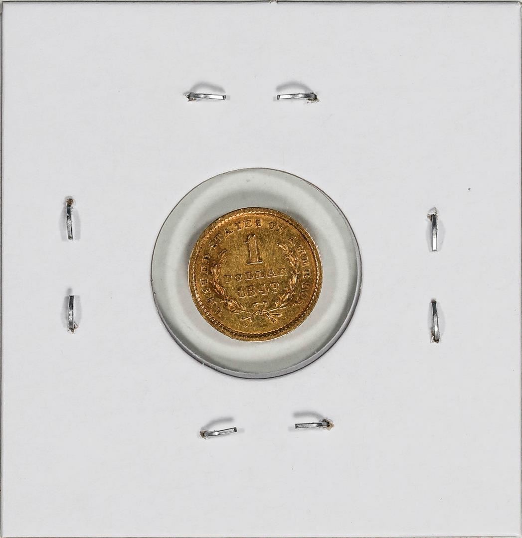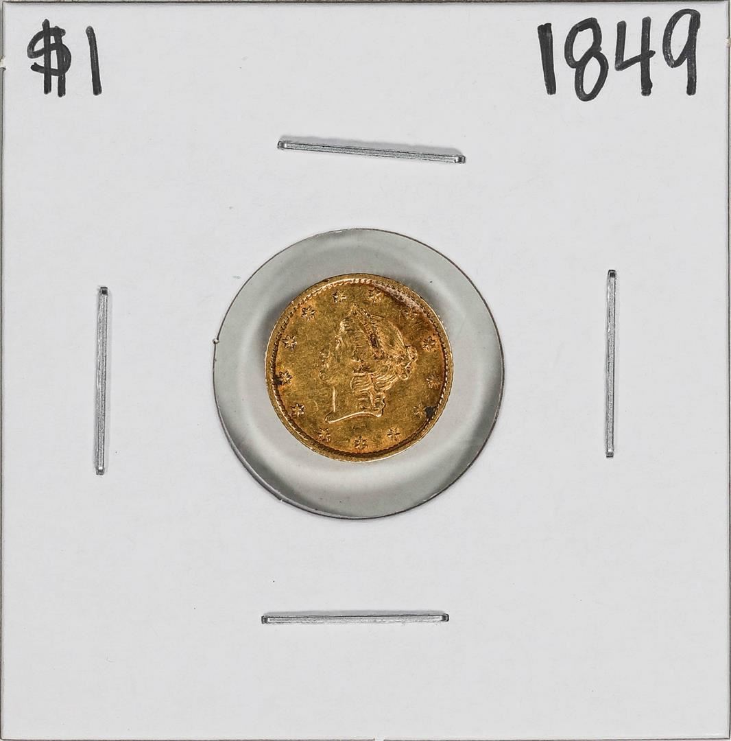 One 1849 $1 Liberty Head Gold Dollar Coin.