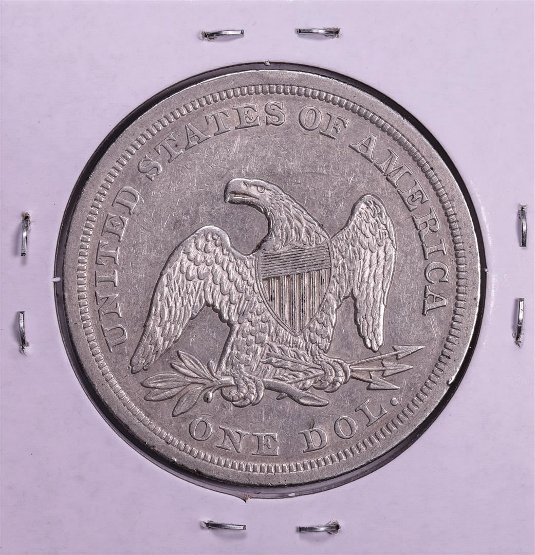 One 1849 $1 Seated Liberty Silver Dollar Coin.