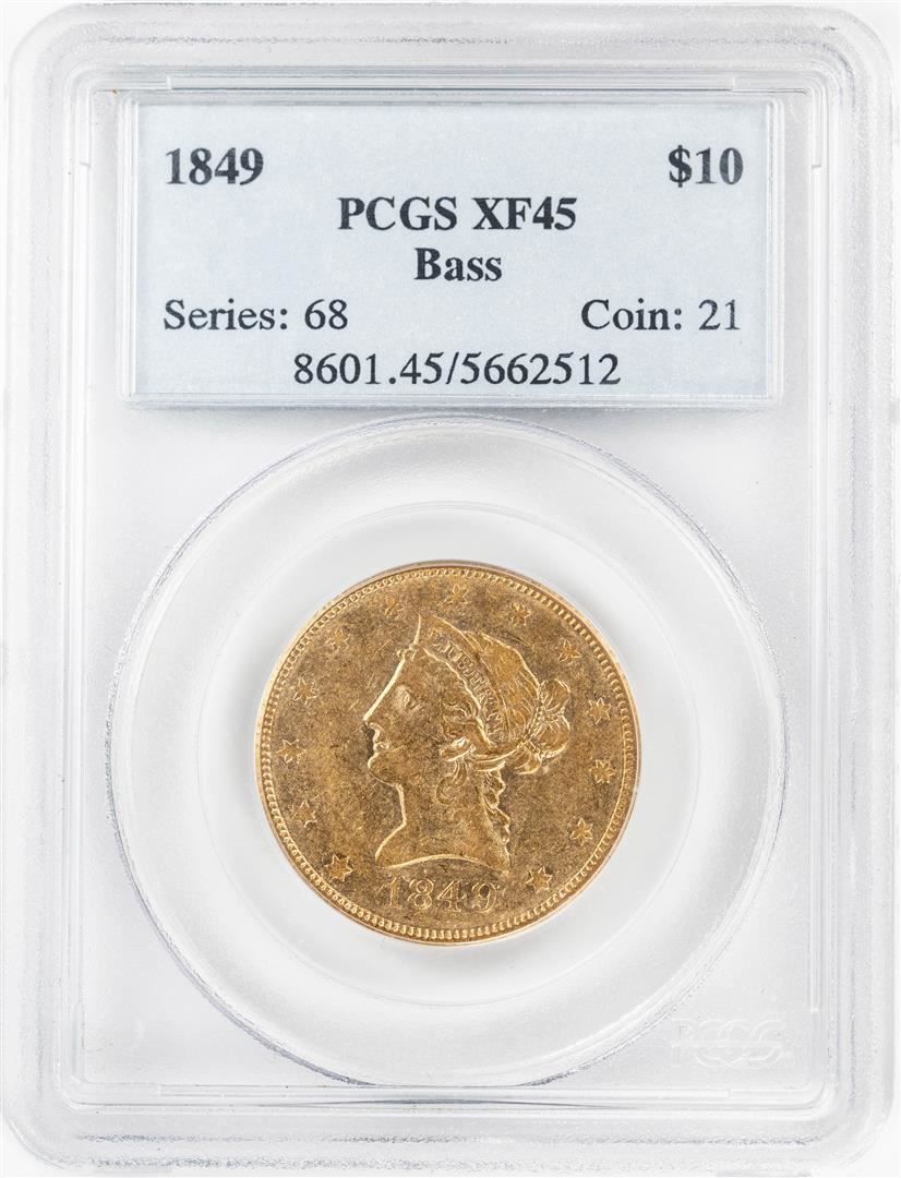 One 1849 $10 Liberty Head Eagle Gold Coin PCGS XF45 Bass Collection. PCGS Graded.