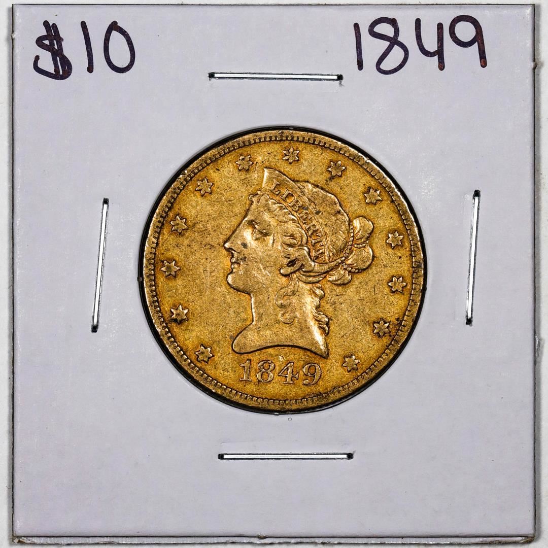 One 1849 $10 Liberty Head Eagle Gold Coin.
