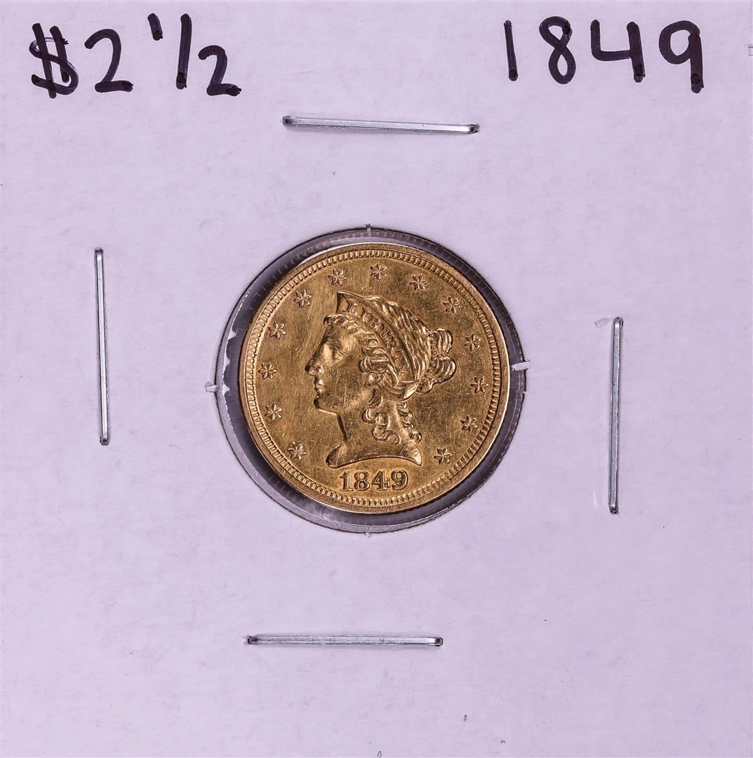 One 1849 $2 1/2 Liberty Head Quarter Eagle Gold Coin.