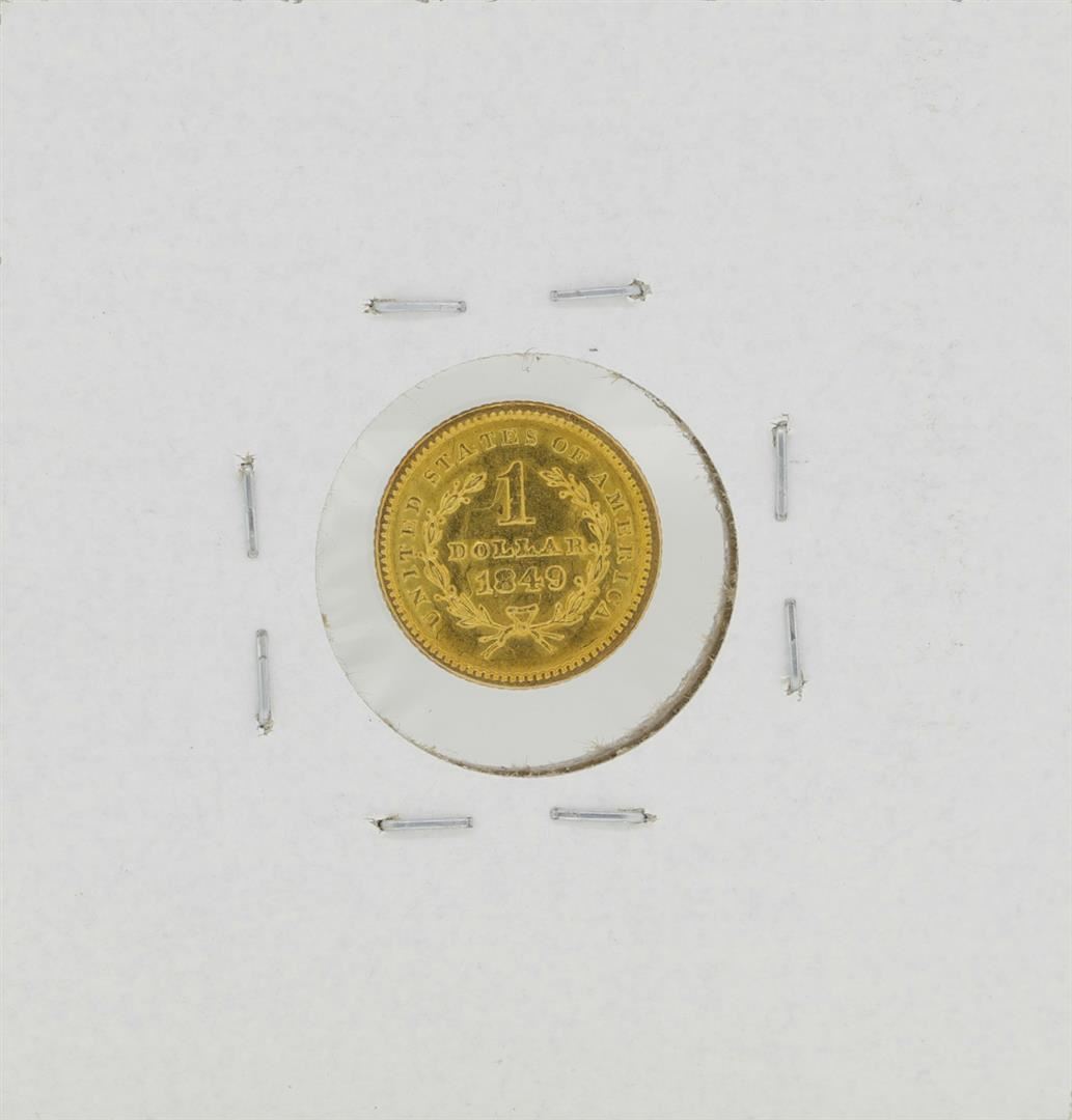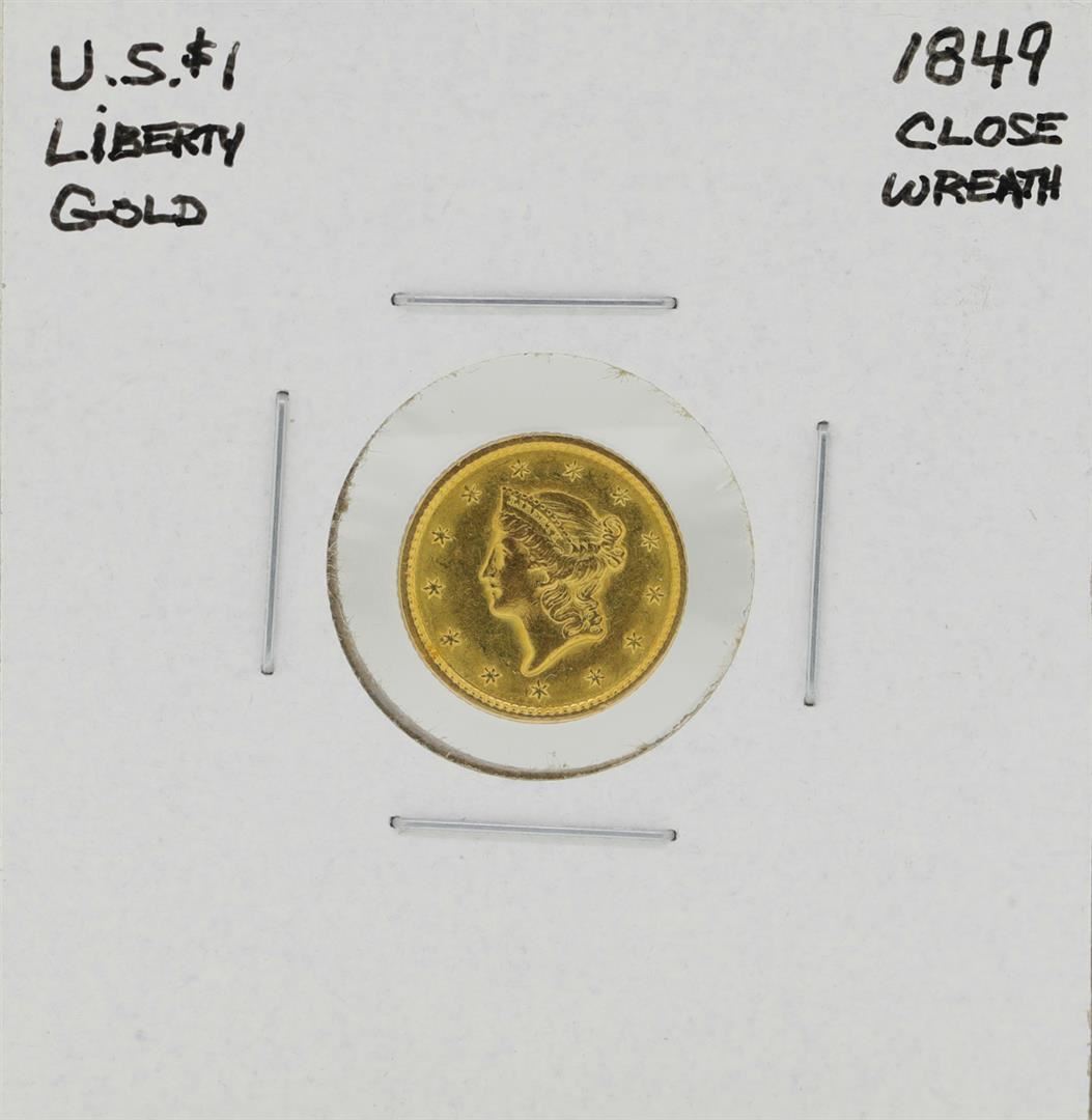 One 1849 Closed Wreath $1 Liberty Head Gold Dollar Coin.