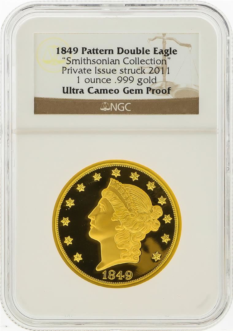 One 1849 Pattern Double Eagle Smithsonian Collection Gold Coin NGC Ultra Cameo Gem Proof. NGC Certified.