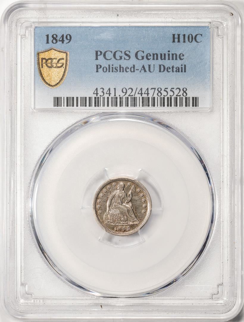 One 1849 Seated Liberty Half Dime Coin PCGS Genuine AU Detail. PCGS Graded.