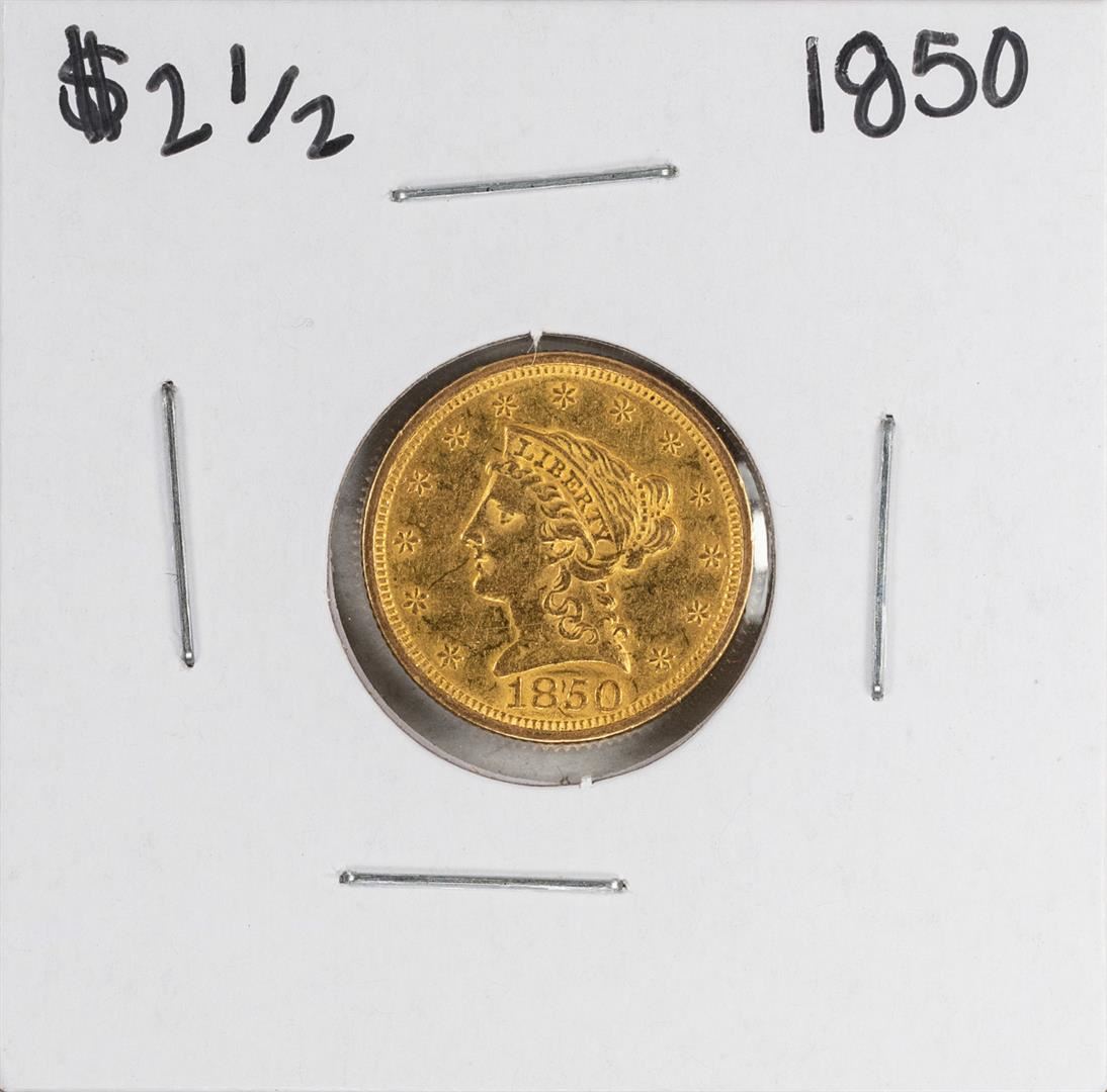 One 1850 $2 1/2 Liberty Head Quarter Eagle Gold Coin.