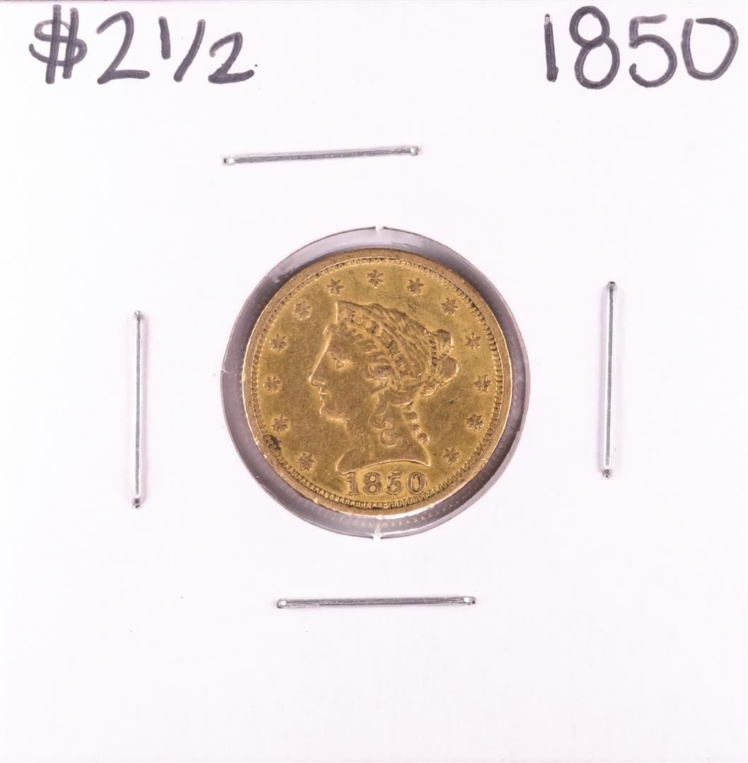 One 1850 $2 1/2 Liberty Head Quarter Eagle Gold Coin.