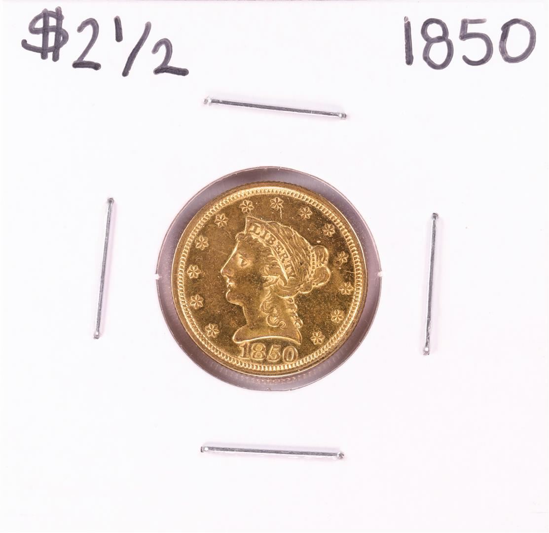 One 1850 $2 1/2 Liberty Head Quarter Eagle Gold Coin.