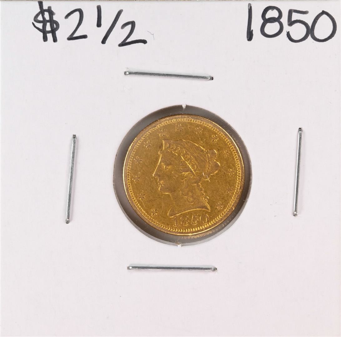 One 1850 $2 1/2 Liberty Head Quarter Eagle Gold Coin.
