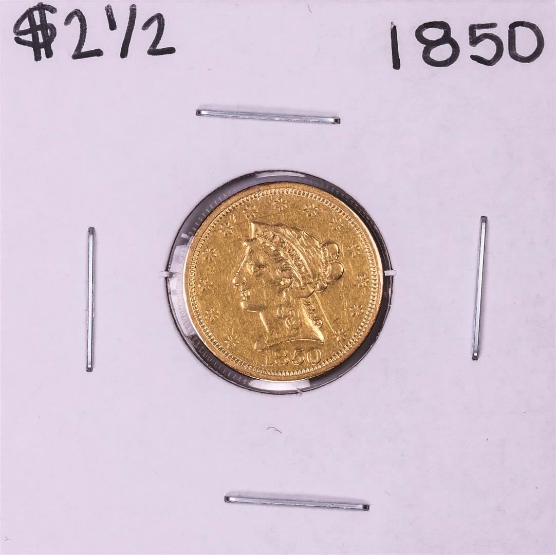 One 1850 $2 1/2 Liberty Head Quarter Eagle Gold Coin.