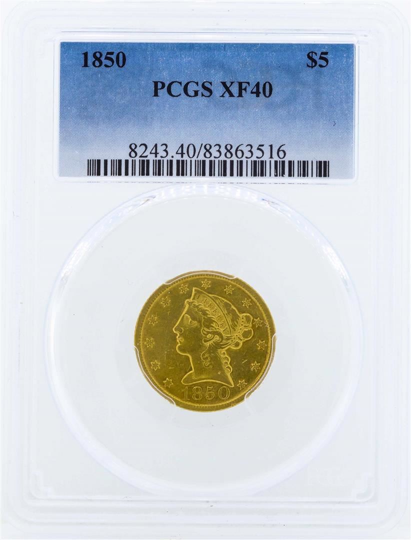 One 1850 $5 Liberty Head Half Eagle Gold Coin PCGS XF40. PCGS Graded.