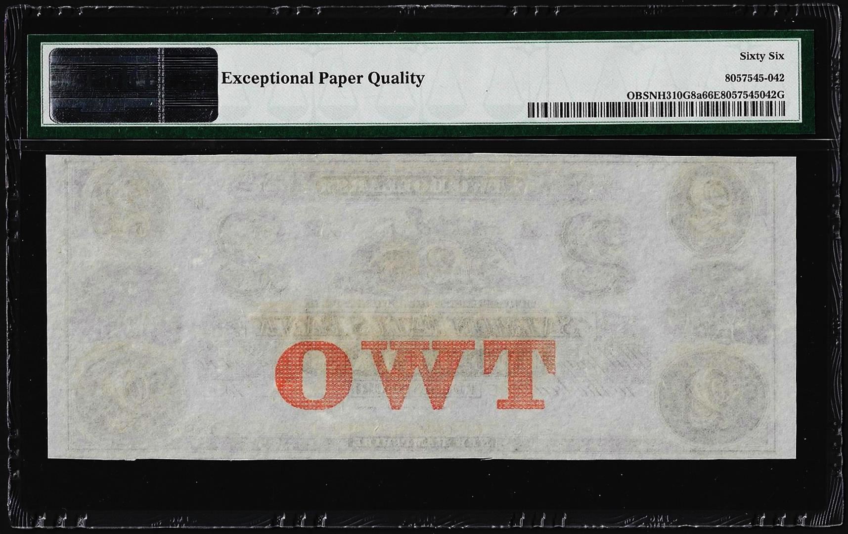 1850-60's $2 Salmon Falls Bank Obsolete Note PMG Gem Uncirculated 66EPQ