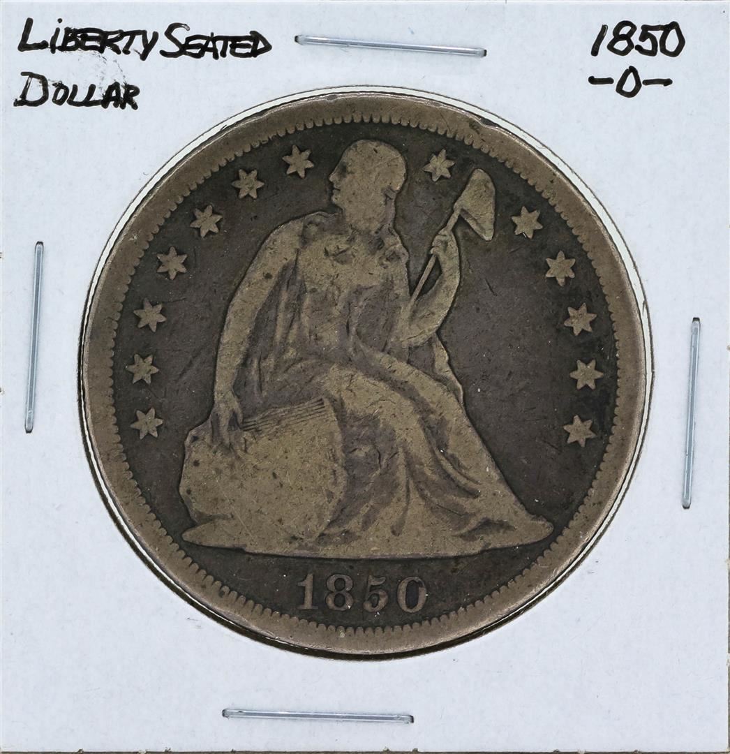 One 1850-O $1 Liberty Seated Dollar Coin.