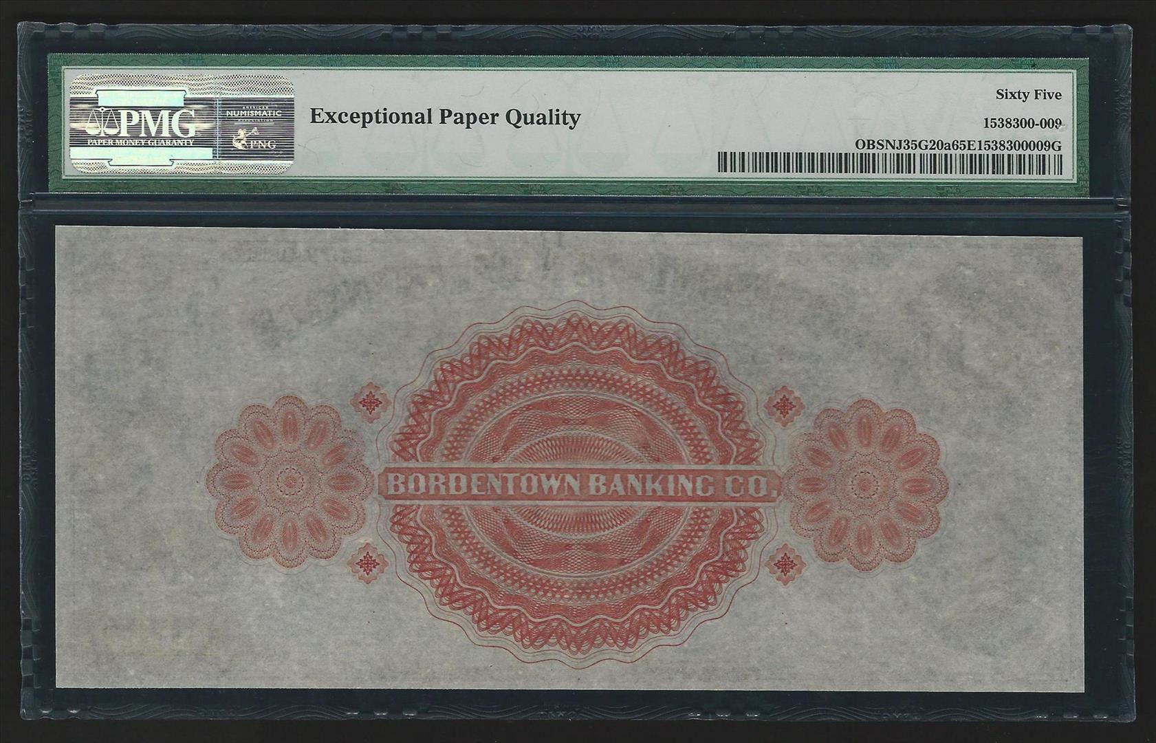 One 1850s $10 Bordentown Banking Co. Obsolete Bank Note PMG Gem Uncirculated 65EPQ. PMG Certified.