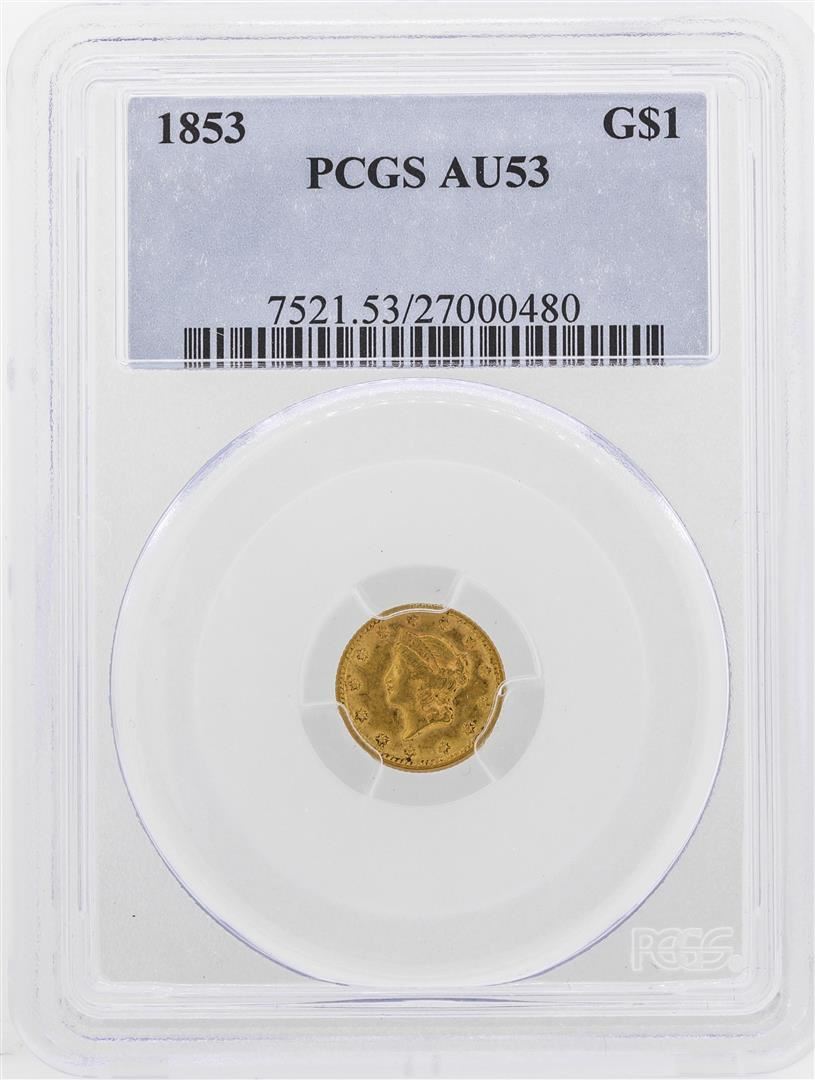 One 1851 $1 Liberty Head Gold Dollar Coin PCGS AU53. PCGS Graded.