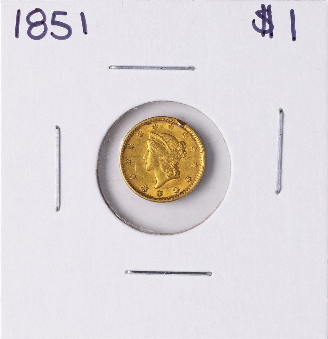 One 1851 $1 Liberty Head Gold Dollar Coin.