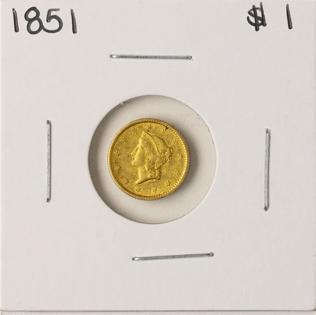 One 1851 $1 Liberty Head Gold Dollar Coin.