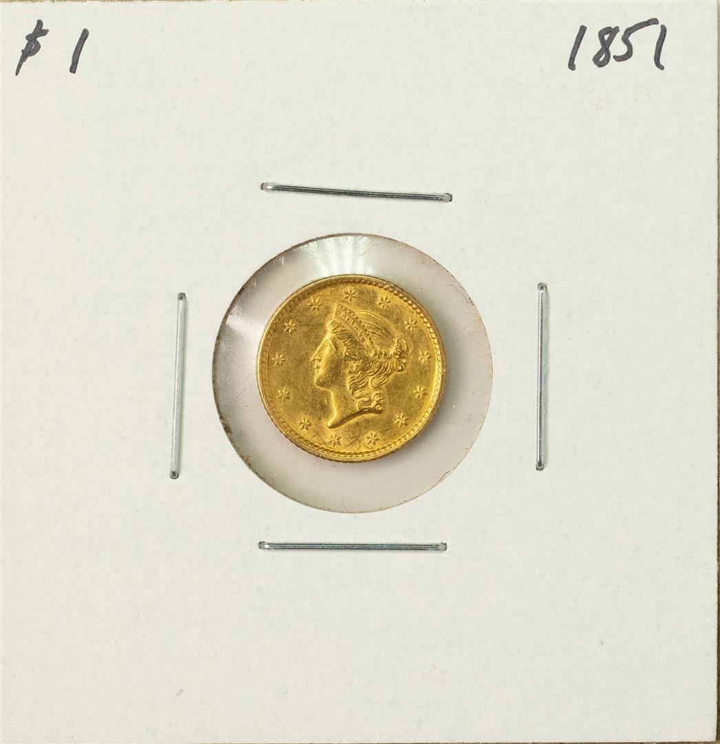 One 1851 $1 Liberty Head Gold Dollar Coin.