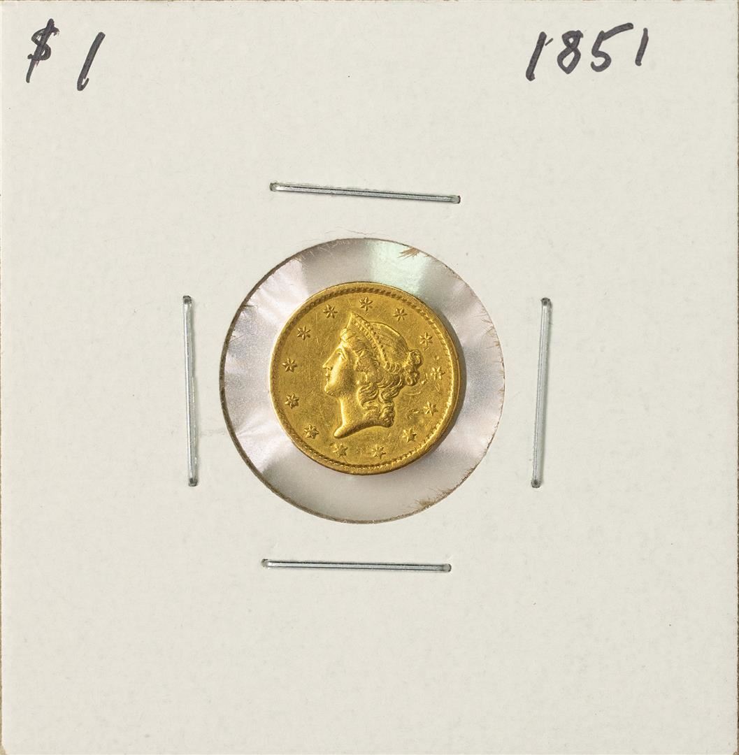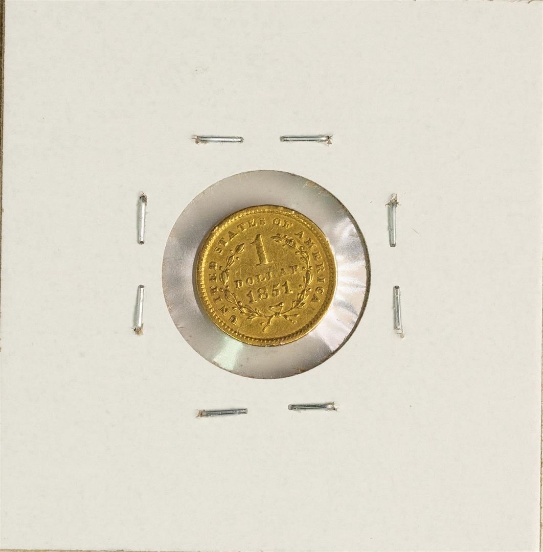 One 1851 $1 Liberty Head Gold Dollar Coin.