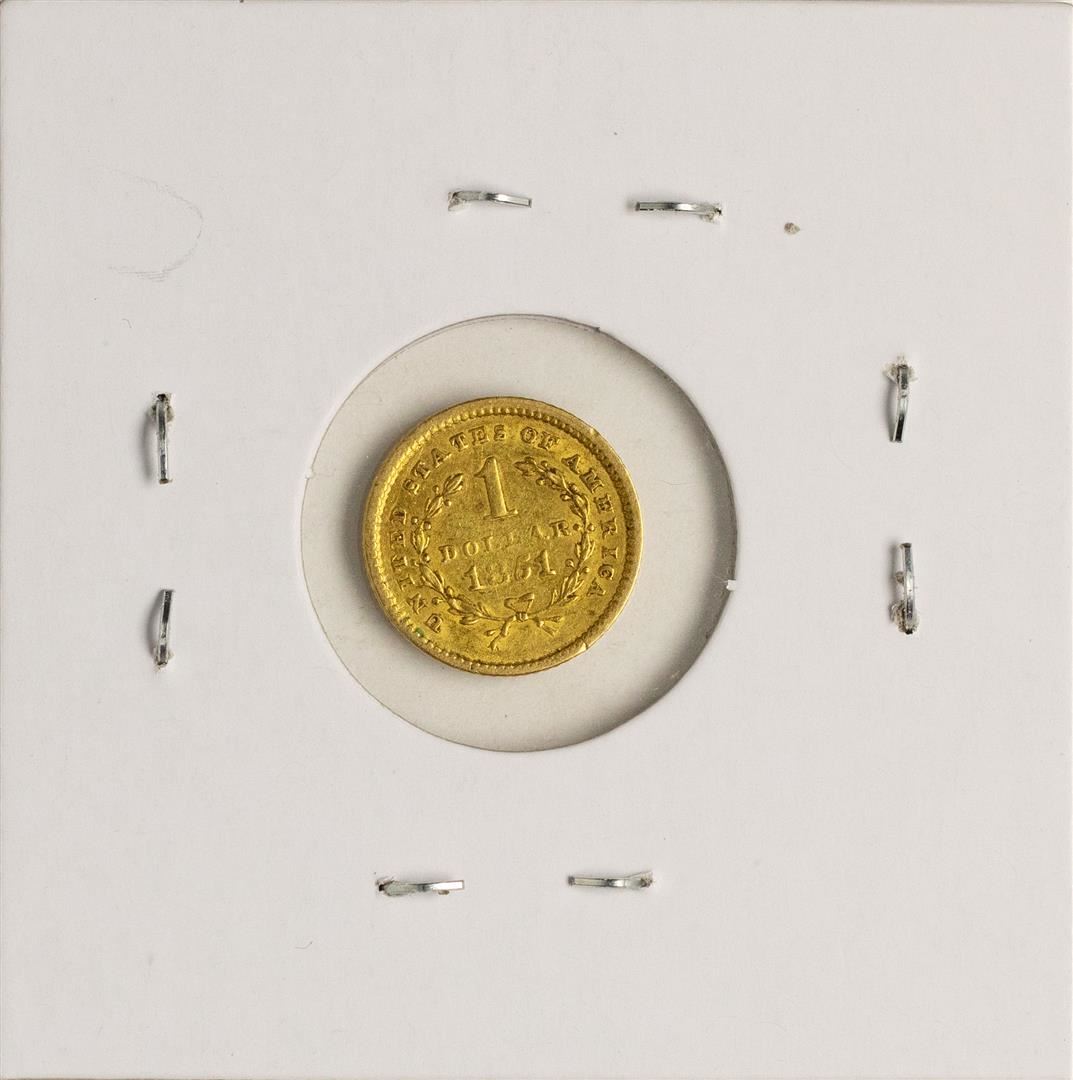 One 1851 $1 Liberty Head Gold Dollar Coin.