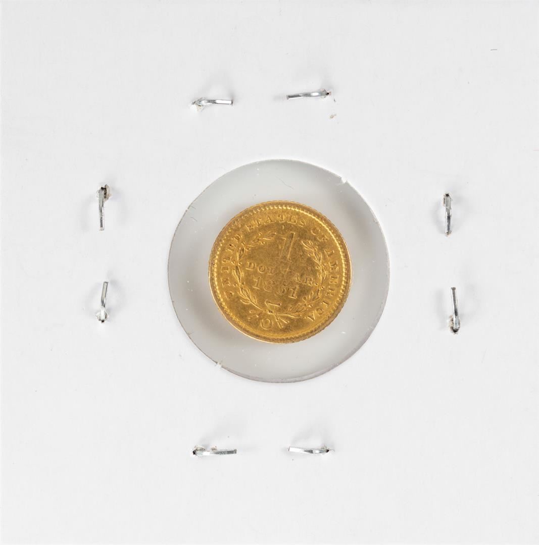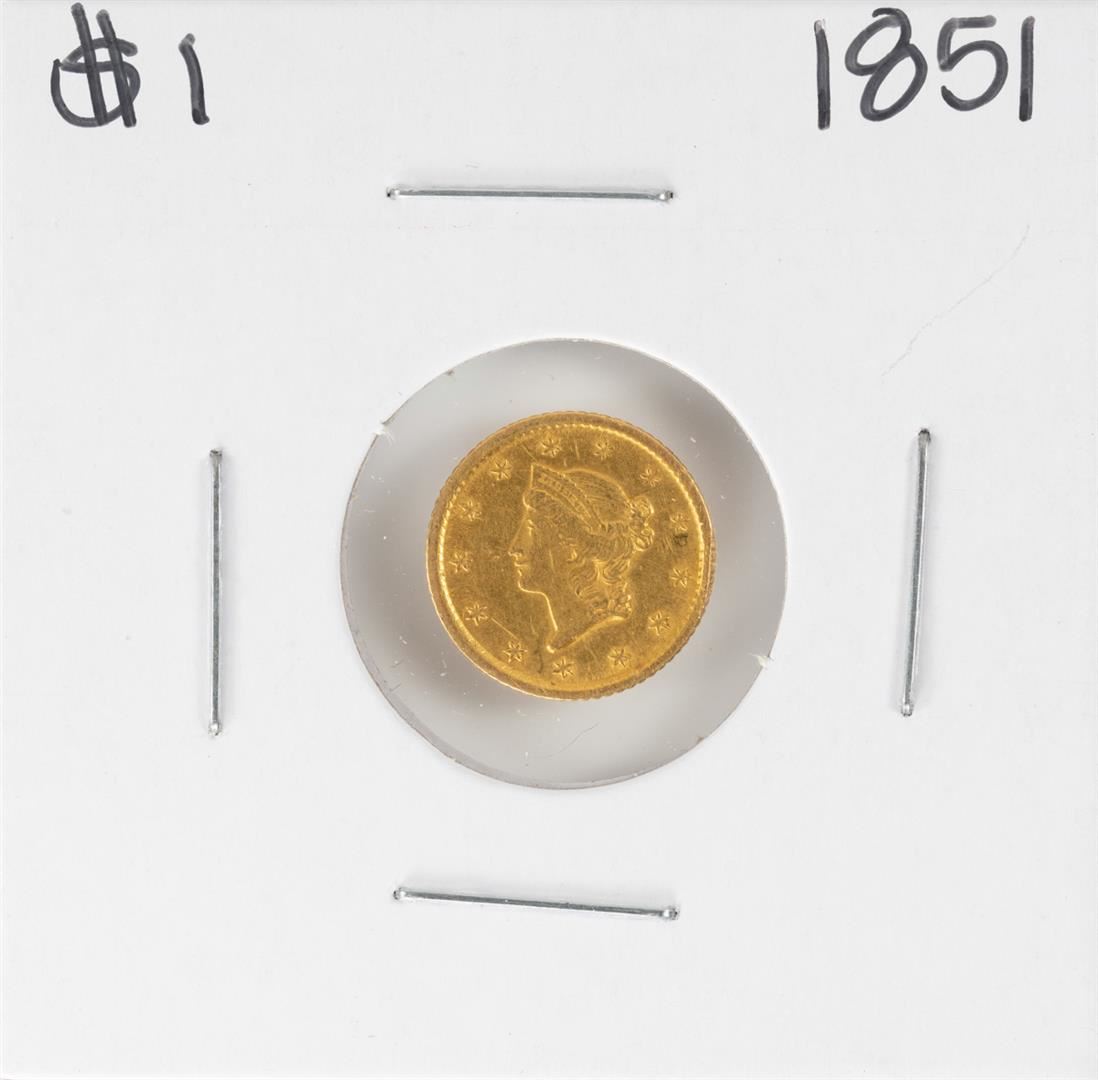 One 1851 $1 Liberty Head Gold Dollar Coin.