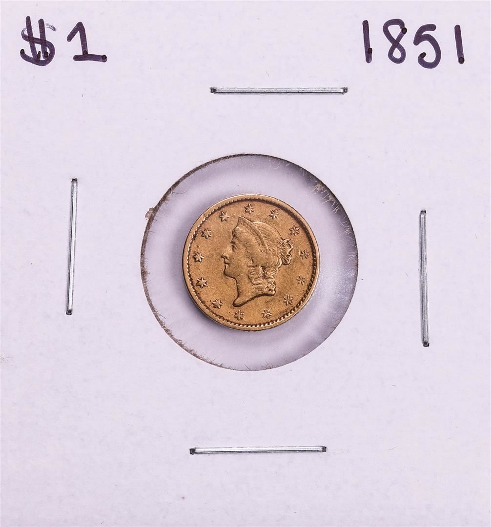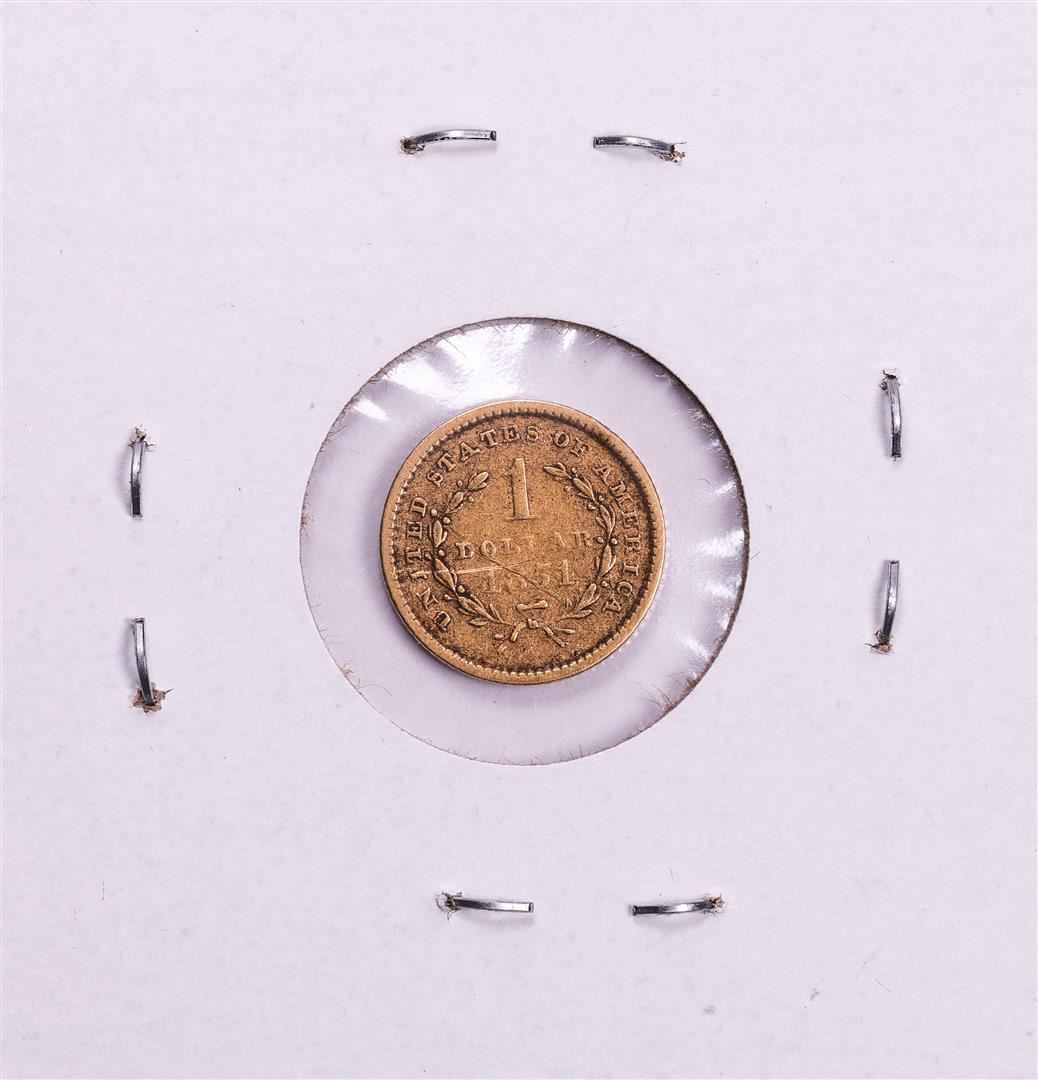 One 1851 $1 Liberty Head Gold Dollar Coin.