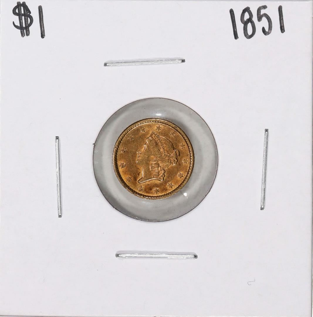 One 1851 $1 Liberty Head Gold Dollar Coin.