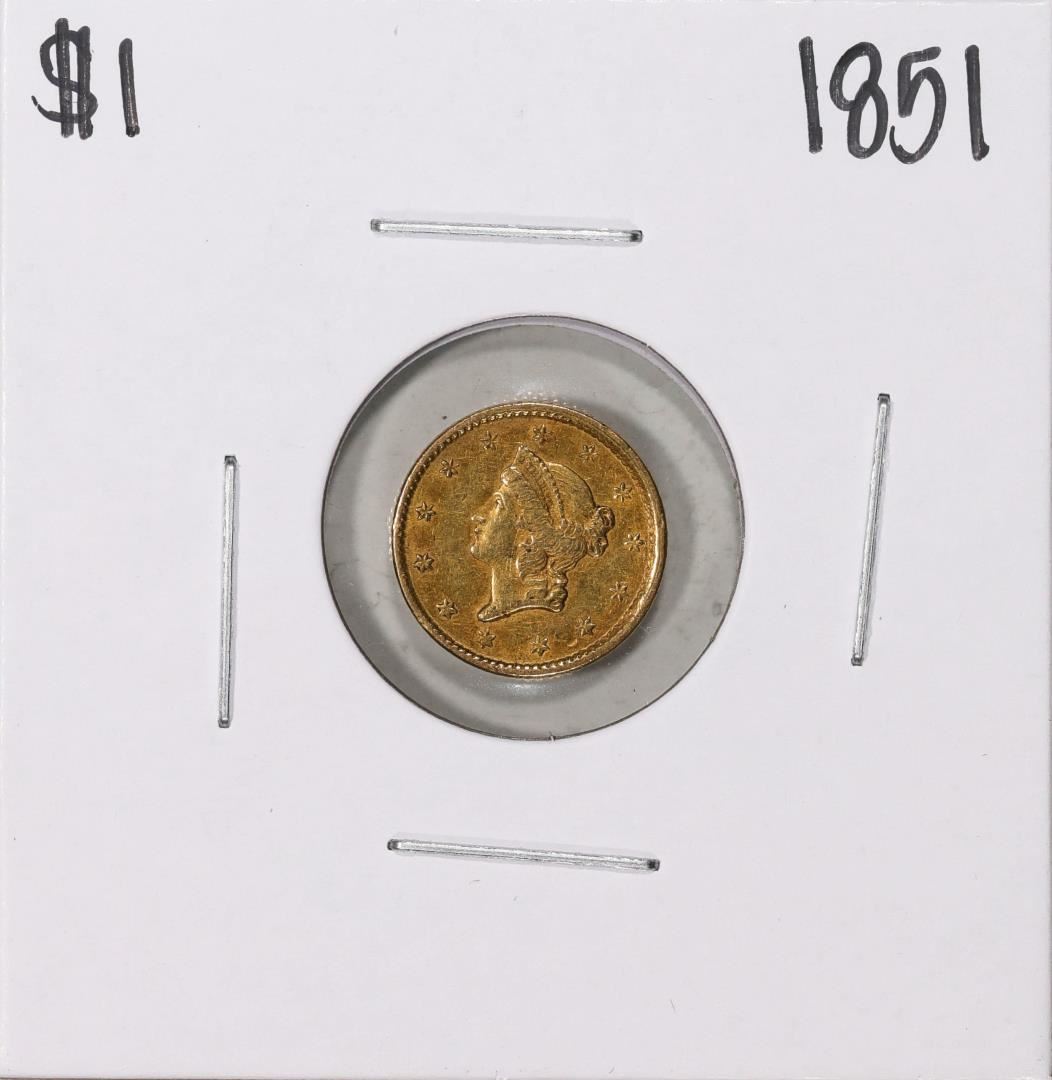 One 1851 $1 Liberty Head Gold Dollar Coin.