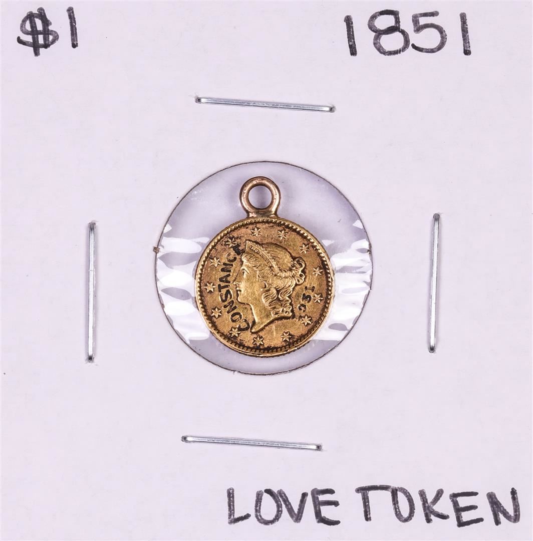 1851 $1 Liberty Head Gold Dollar Love Token Coin Pendant