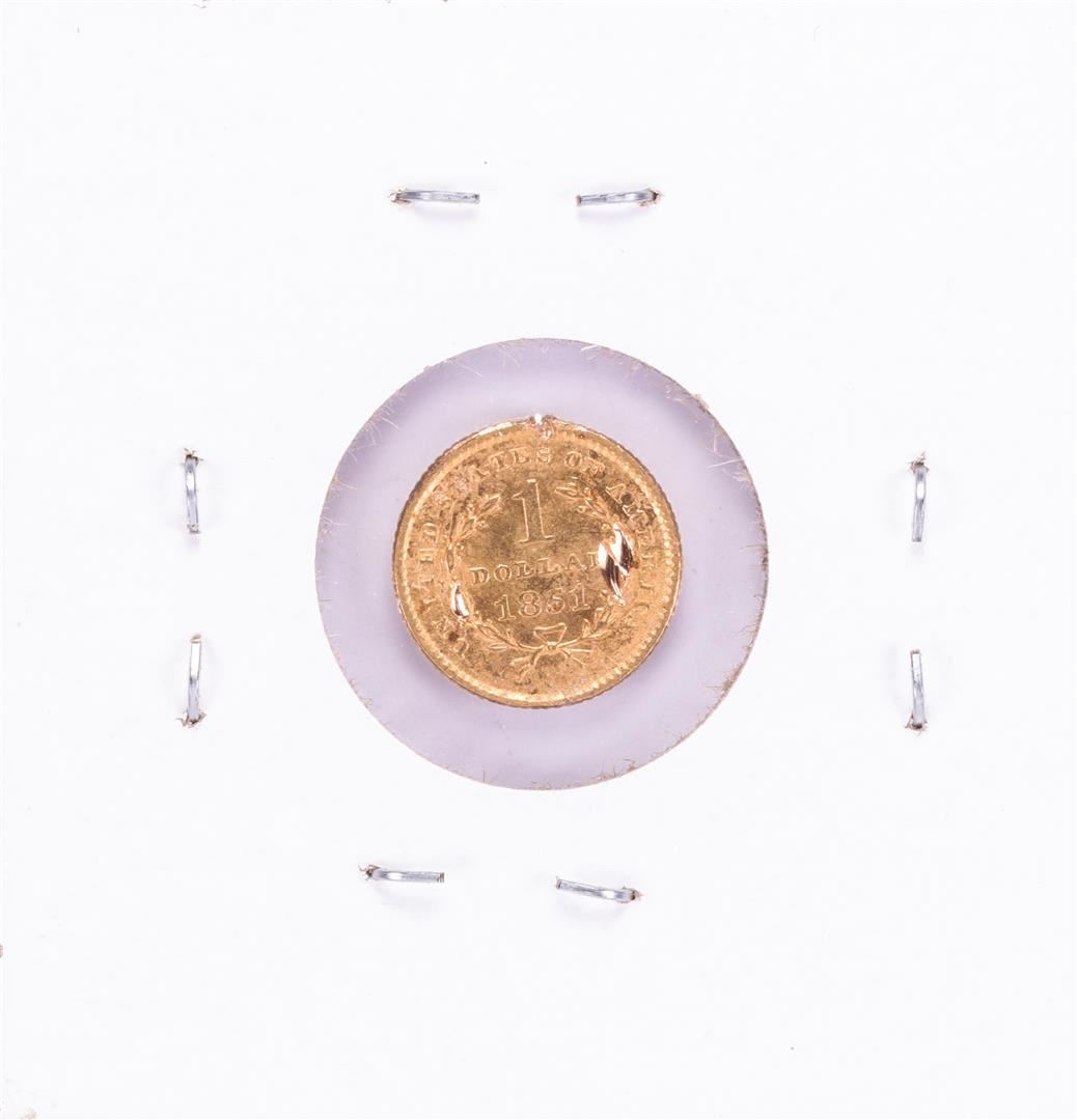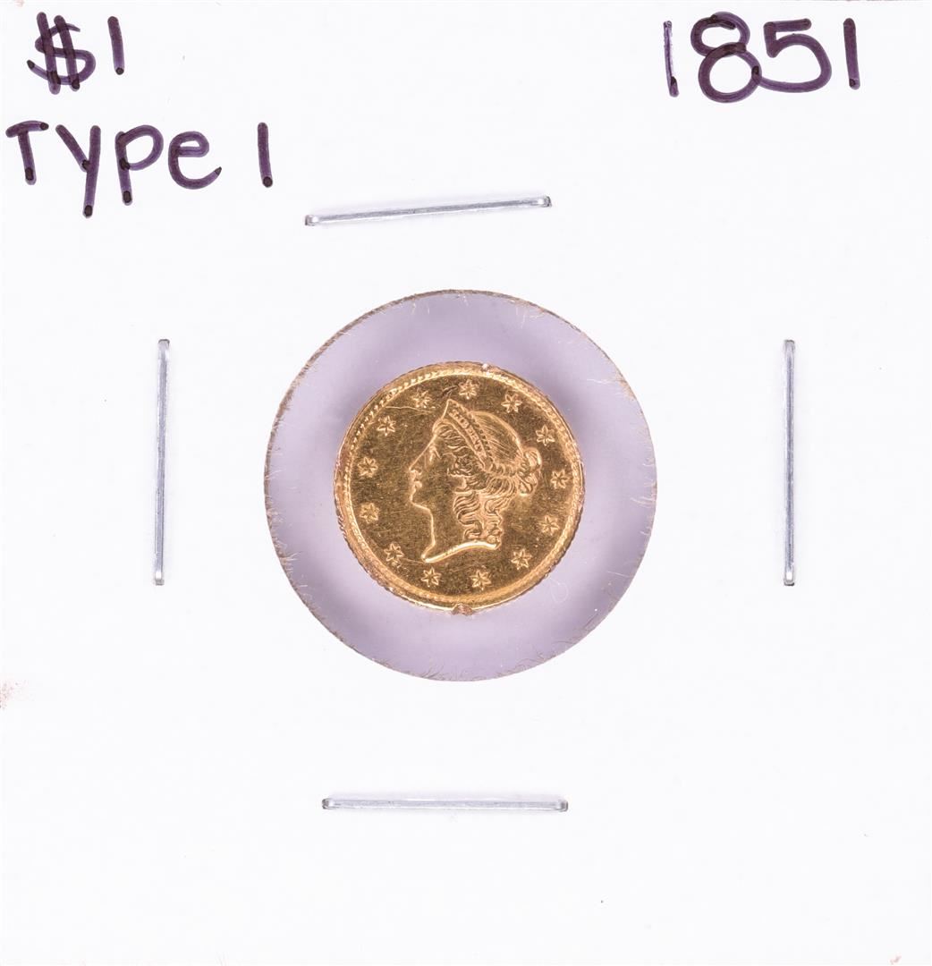 One 1851 $1 Type 1 Liberty Head Gold Dollar Coin.