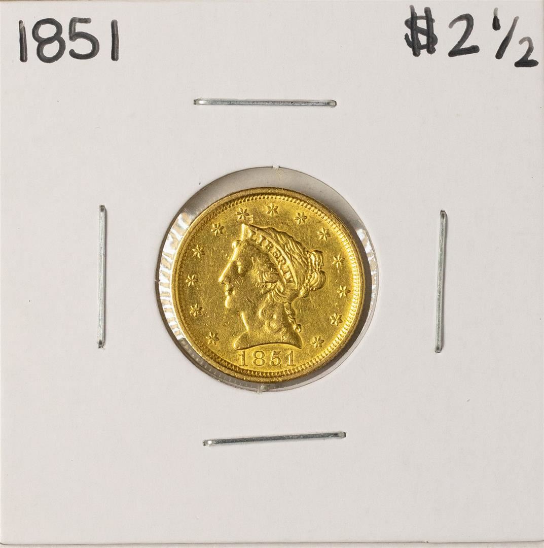 One 1851 $2 1/2 Liberty Head Quarter Eagle Gold Coin.