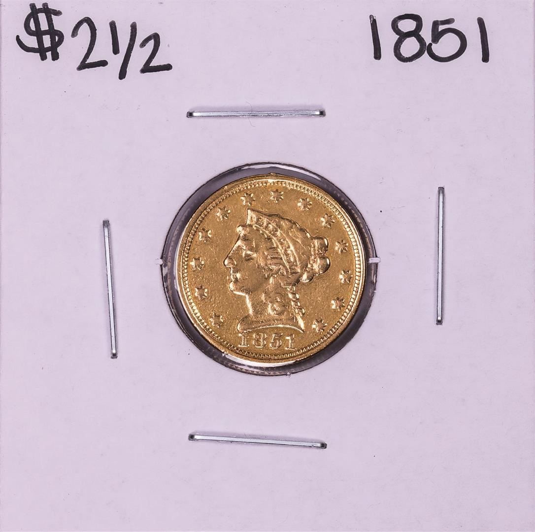 One 1851 $2 1/2 Liberty Head Quarter Eagle Gold Coin.