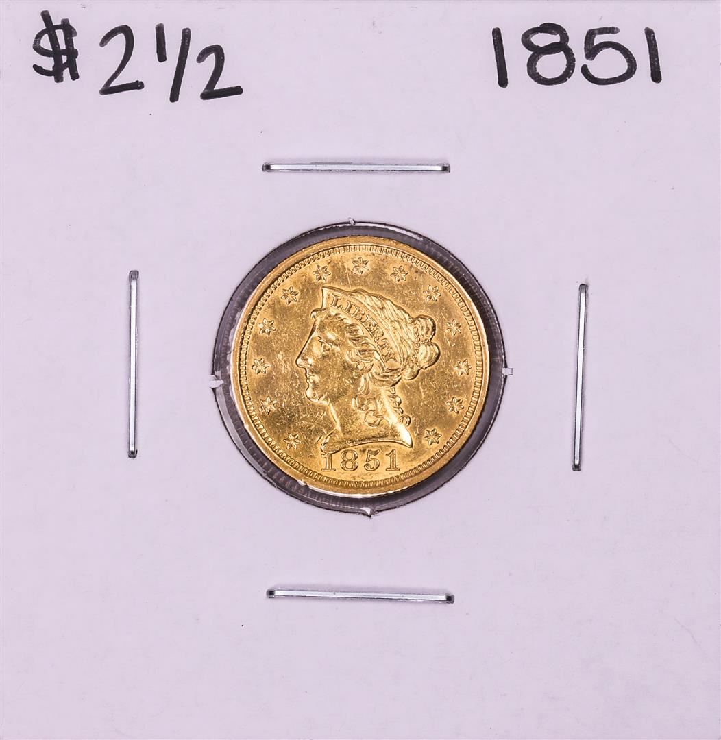 One 1851 $2 1/2 Liberty Head Quarter Eagle Gold Coin.