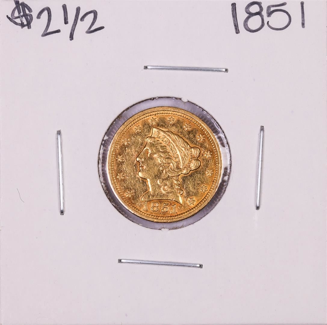 One 1851 $2 1/2 Liberty Head Quarter Eagle Gold Coin.