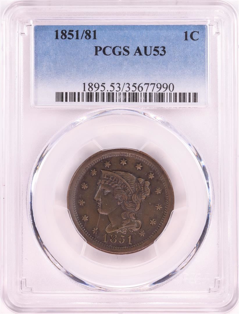One 1851/81 Braided Hair Large Cent Coin PCGS AU53. PCGS Graded.