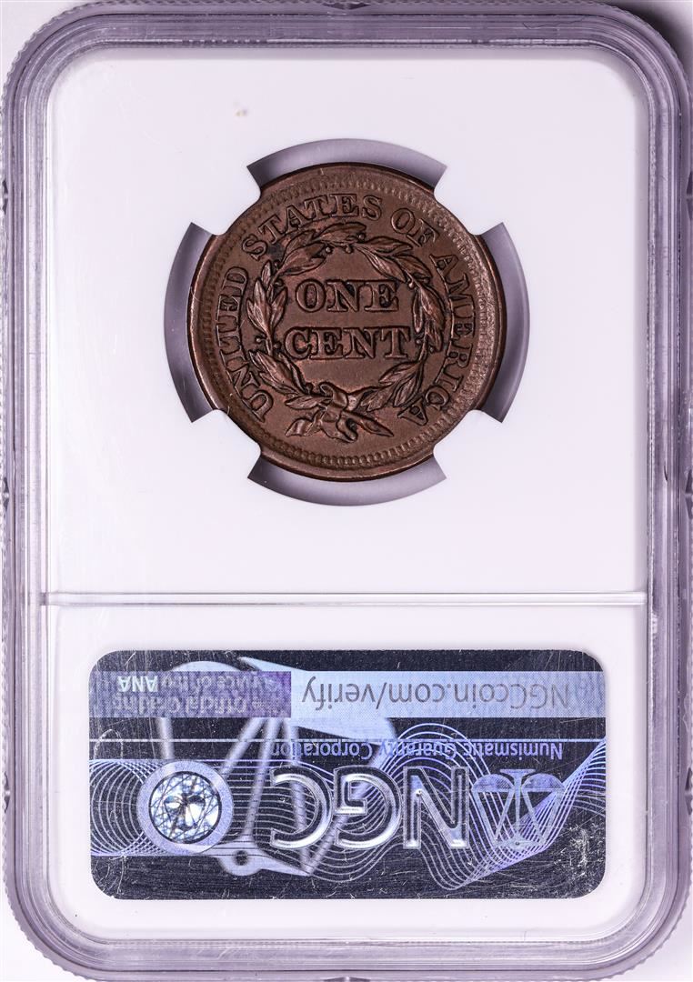 One 1851 Braided Hair Large Cent Coin NGC AU58BN. NGC Certified.