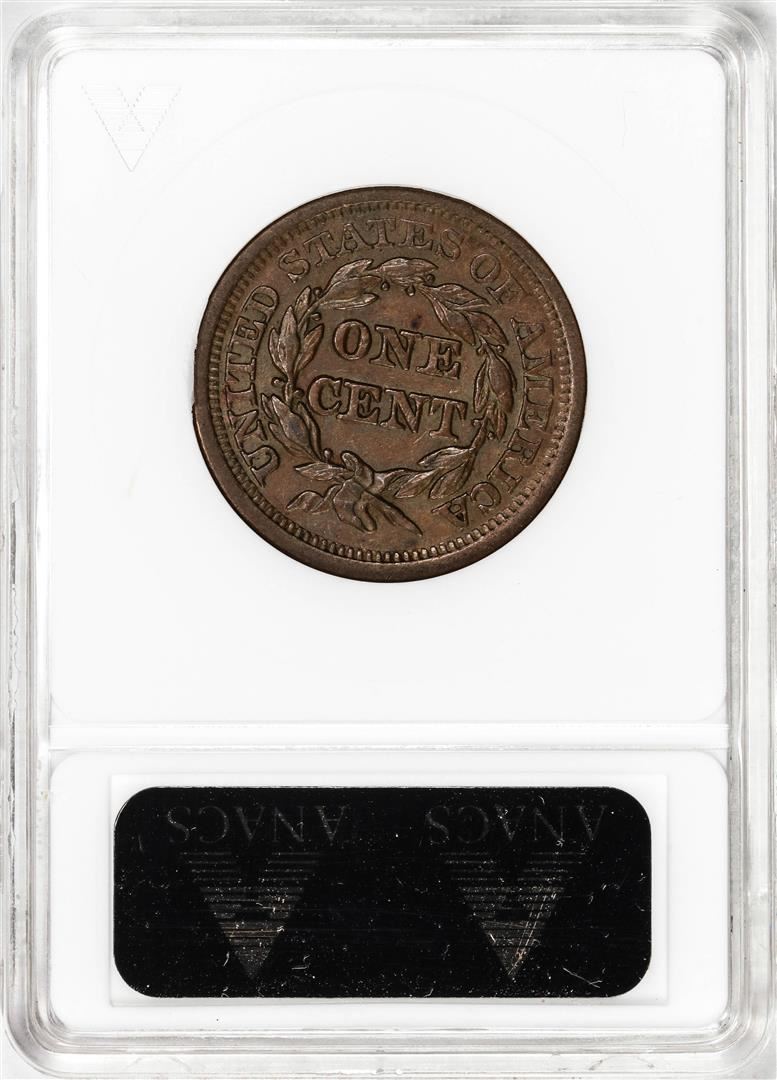 One 1851 Coronet Large Cent Coin ANACS AU53. ANACS Certified.