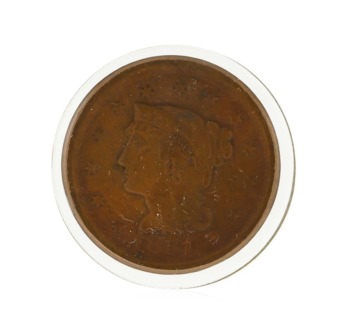 Bidders are advised that certain types of plastic may react with a coin's metal or transfer plasticizer to notes and may cause damage. Caution should be used to avoid storage in materials that are not inert.
