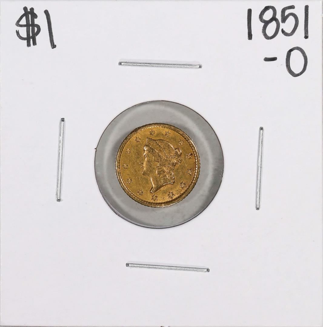 1851-O $1 Liberty Head Gold Dollar Coin Solder Mark on Reverse