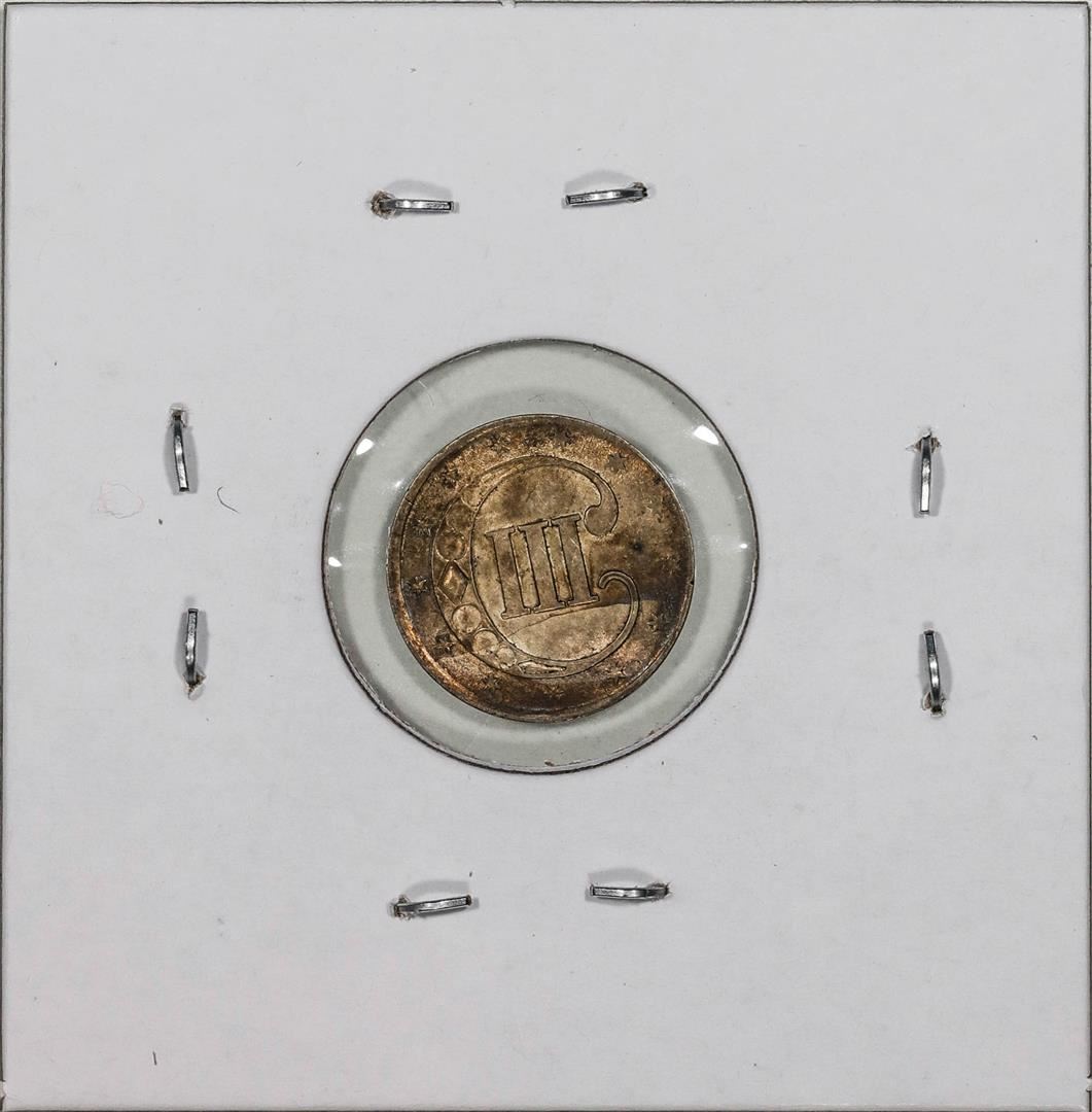 One 1851 Three Cent Piece Silver Coin.