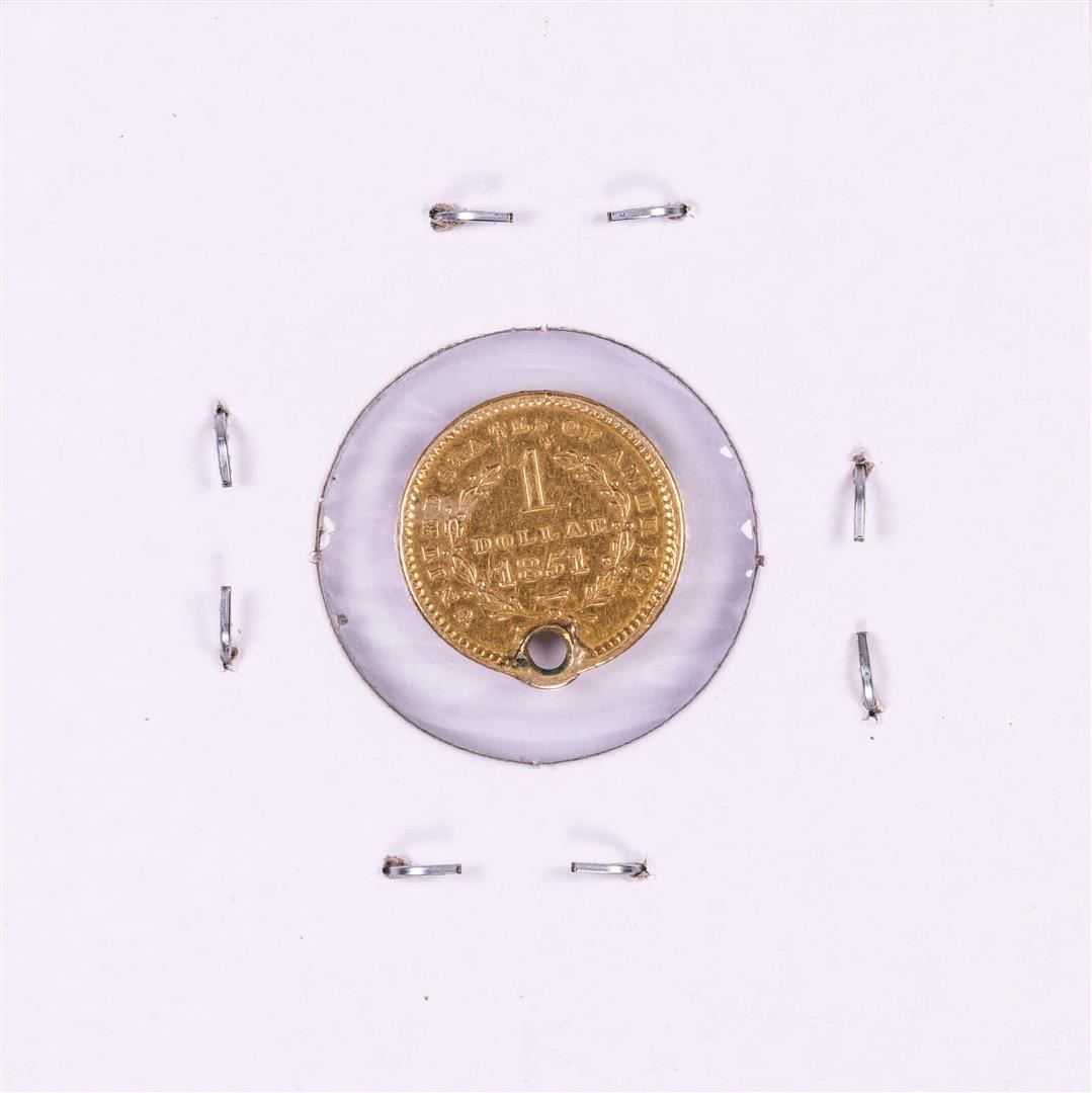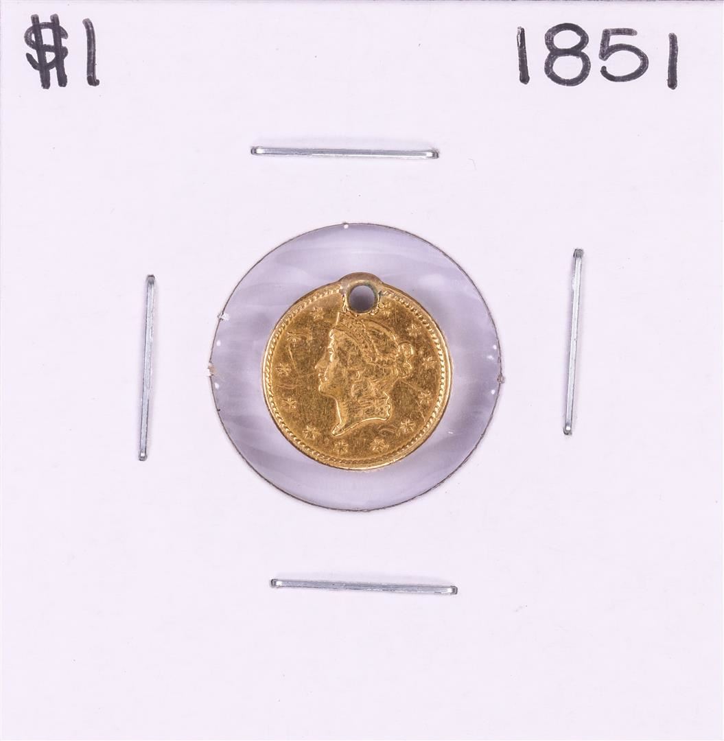 One 1851 Type 1 $1 Liberty Head Gold Dollar Coin with Hole.