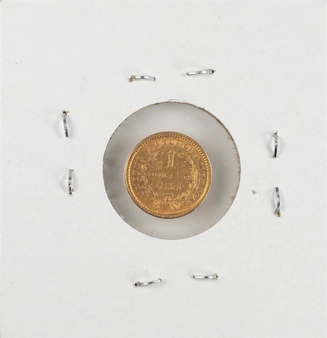One 1851 Type 1 $1 Liberty Head Gold Dollar Coin.