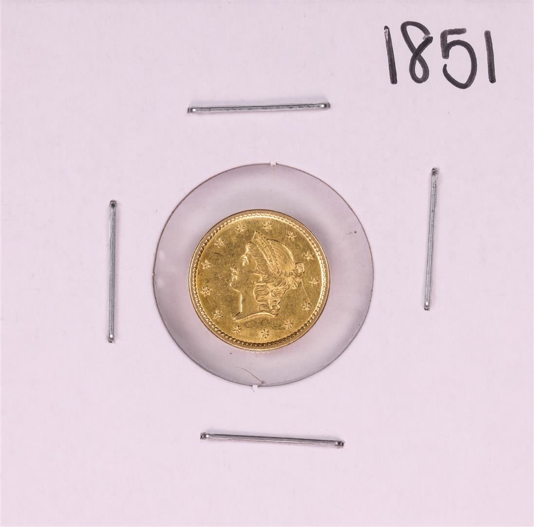 One 1851 Type 1 $1 Liberty Head Gold Dollar Coin.