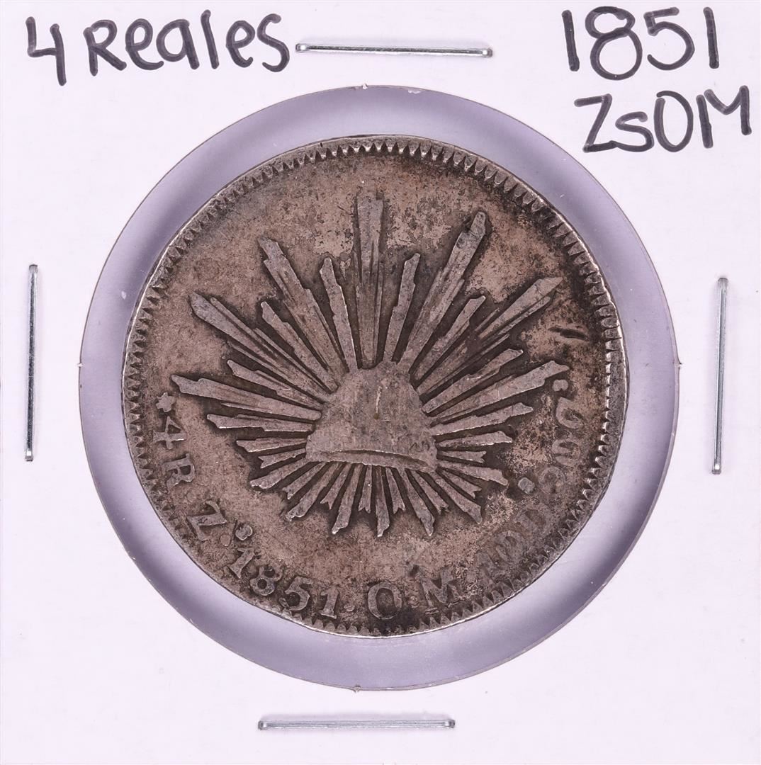 One 1851 ZsOM Mexico 4 Reales Silver Coin.