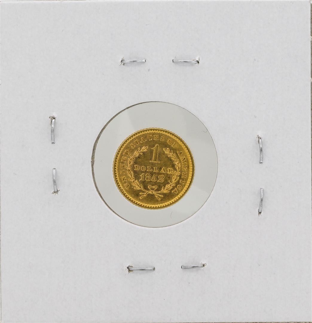 One 1852 $1 Liberty Head Dollar Gold Coin.